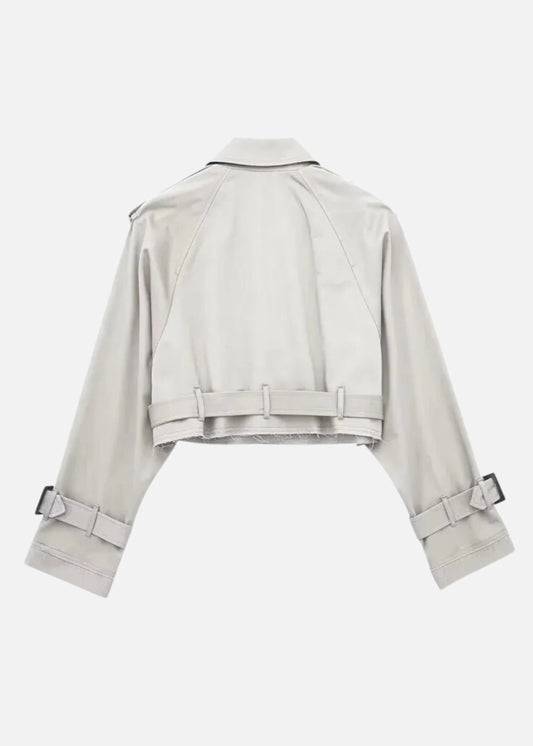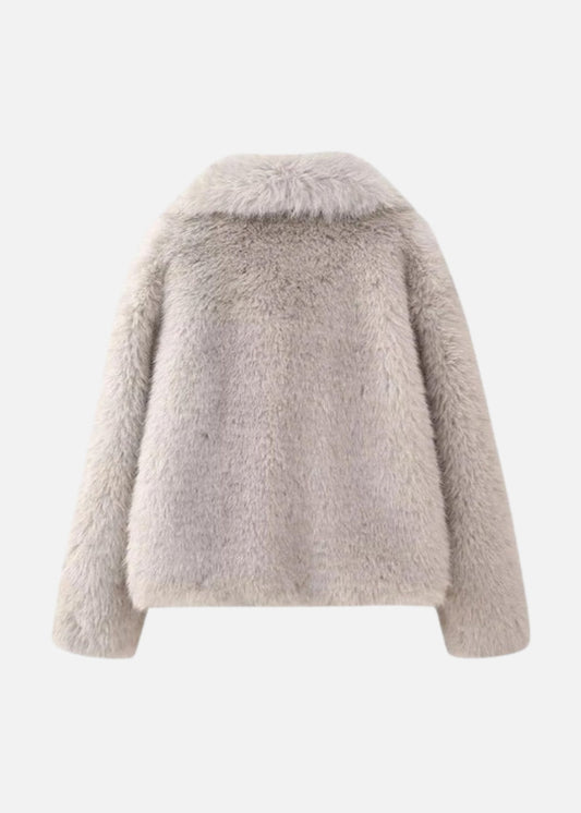 FAUX FUR TURN DOWN COLLOR JACKET - OFF GREY