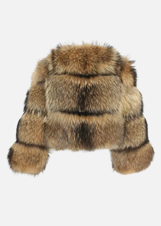 FAUX FUR TURN DOWN COLLOR JACKET - BROWN