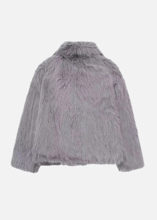 FAUX FUR TURN DOWN COLLOR JACKET - GREY