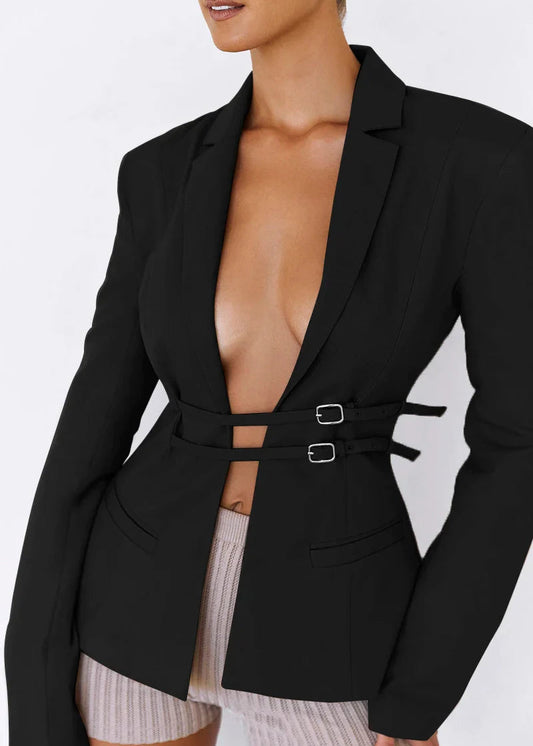 FAUX FUR TURN DOWN COLLOR JACKET - BLACK