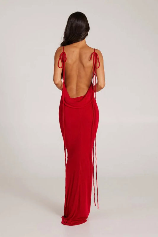 • STRAPLESS VELVET AND SATIN BODY-CON MAXI DRESS