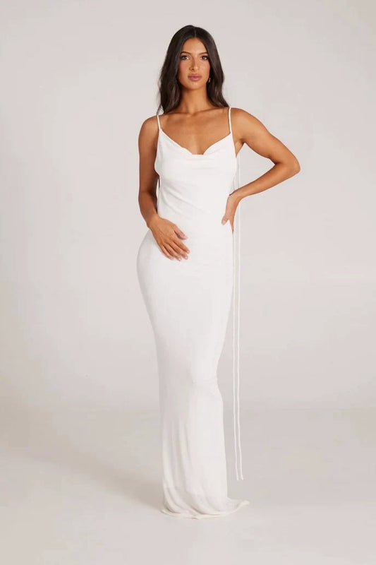 • WHITE KNITTED OFF SHOULDER MAXI DRESS