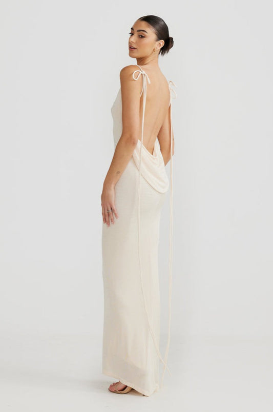 • BUTTONED CREAM KNITTED MAXI DRESS