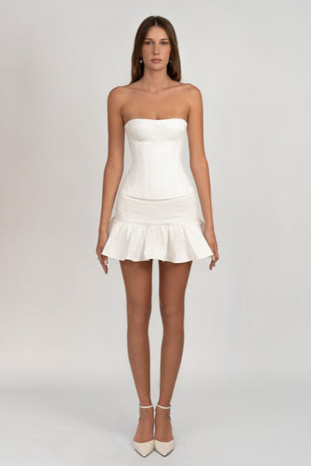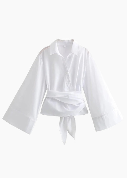 WHITE FLARED SLEEVE WRAP AROUND SHIRT