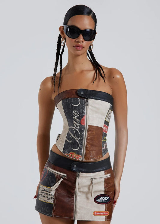 BLACK OFF-SHOULDER FUR CORSET TOP