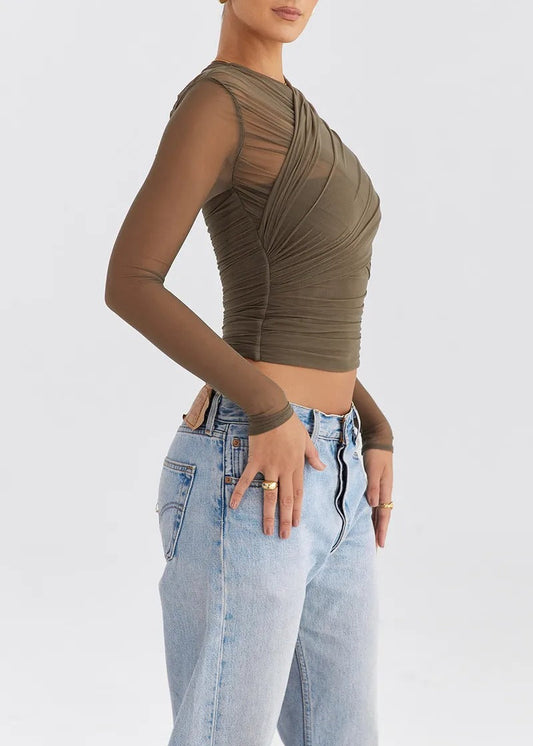 BLACK FLARED SLEEVE WRAP AROUND SHIRT