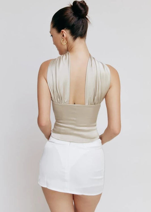 BLACK OFF SHOULDER SATIN BANDEAU TOP