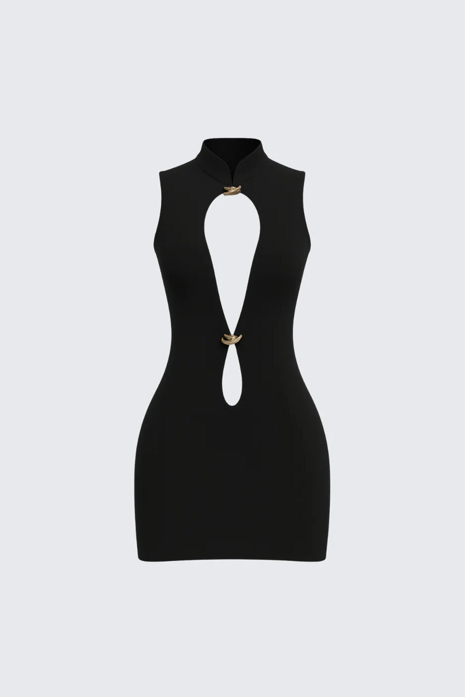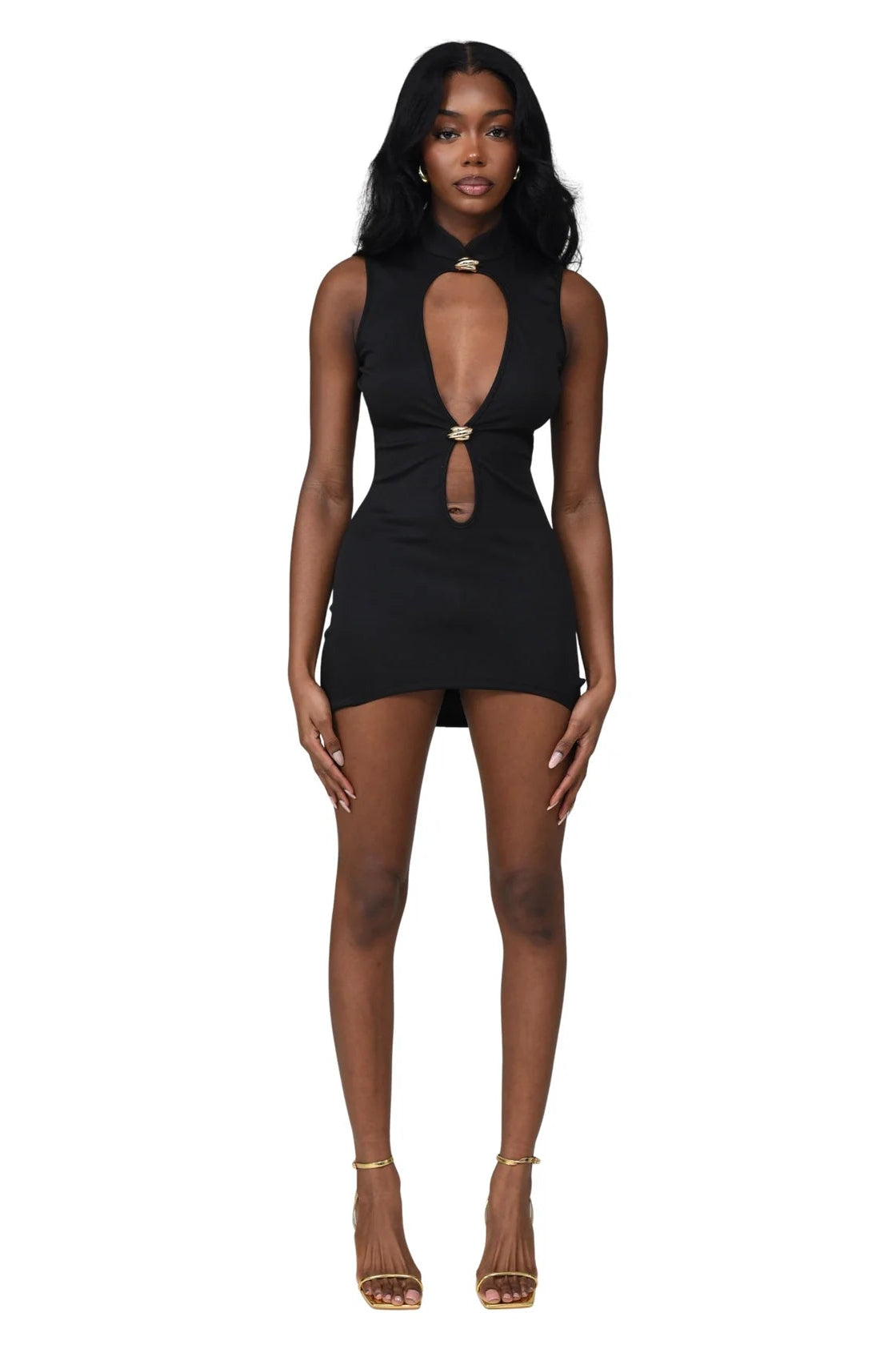 Luci Black Cut‑Out Ring Detail Bodycon Mini Dress